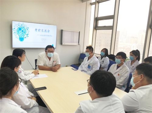 全科基地魏锦主任介绍了本次交流会的目的,并介绍了学习方法,鼓励大家在不到一个月的时间里,利用有限的时间进行冲刺总结,高标准、严要求,要以“净、静、竞、敬”记心头,“比、学、赶、超”迎挑战的精神,力争高质量地通过本次执医考试。