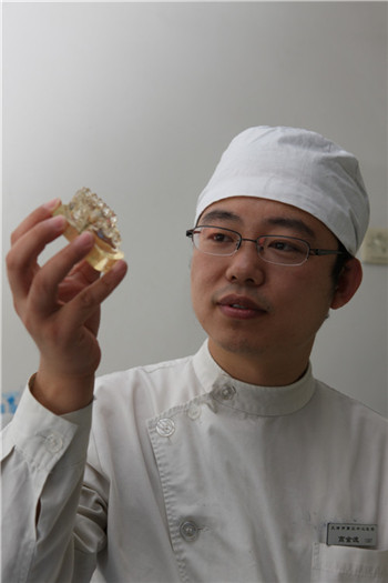 数字化种植修复的流程:经充分的医患沟通后,患者确定实行种植修复缺失牙,常规行颌骨CBCT检查获取DICOM数据;常规取印模,灌注石膏模型,由修复技工进行排牙,确定未来修复体的位置,通过3D扫描获取数字化信息;将两组数据导入专用软件进行拟合,生成患者颌骨的三维数值化模型;医生在此模型上确认需种植牙的数目、位置、三维方向等信息;最后生成一个工程文件,通过3D打印生产出种植手术用的导板。临床医生根据之前确认的治疗计划和手术导板实施手术植入种植体。2-6个月后进入修复程序,医生常规制取印模,再通过3D扫描转化为数字化印模,或者直接取数字化印模,导入专用软件后,进行个性化基台和个性化修复冠的设计,通过精密机床进行生产,最终由技师进行配色和修饰,完成修复体的制作。最后由临床医生将最终修复体戴入患者口中,完成整个修复过程。 |