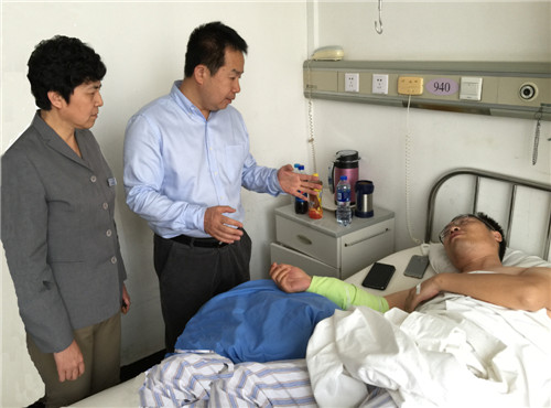 事发当日下午院党委书记、院长李彤,副书记刘伟、人事处处长刘媛等来到病房,代表医院探望和慰问受伤的杨国跃医生,对其尽职尽责的工作态度和奋不顾身的精神给予了高度肯定和赞扬,并叮嘱其安心养伤,争取早日康复。患者家属也在事发后专程来院向杨国跃医生表达了感激和歉意。受伤后不久,杨国跃医生也顾不上多休息就又投入到了工作当中。