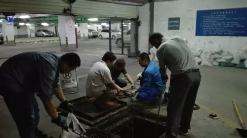 经排查发现,地下车库坡道排水坑一处水泵故障。总务处迅速组织人员抢修,更换水泵。工人师傅们忍受着强烈的恶臭清理淤泥,他们只有一个信念,务必要在强降雨来临前修复排水设施,直至夜里10点多才结束该项工作,排除了地下车库积水的险情。