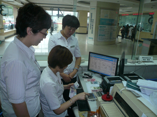 收费处、住院处利用每周午休周会时间,坚持开展业务小讲座,由收费人员结合岗位实际工作轮流进行小讲课,通过讨论交流,各抒己见,组长点评总结,使窗口业务水平不断提高。尽管目前窗口人员紧缺,每天的工作量也呈持续上升趋势,但工作人员仍然热情高涨,掀起了一轮技术练兵的热潮。收费员下夜班不走,休息时也来,可没有人有一句怨言,因为所有的工作人员都希望通过技能大练兵,练就过硬的操作技能和专业本领。