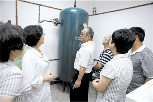 此次检查分为三组,未听汇报,直击现场,针对我院变配电、空调机房、特种设备、危险化学品管理、治安消防及汛期安全等重点部位进行拉网式排查。