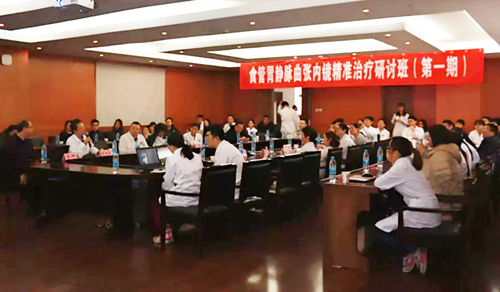 我院作为“中华医学会食管胃静脉曲张诊治规范基地”挂牌单位之一,本次研讨班将依托基地开展系列工作,进一步深入推进本市ESVD内镜诊治规范的建立,推动我市及周边地区食管胃静脉曲张内镜下治疗的发展,使广大肝硬化患者获益。(梁静) |
