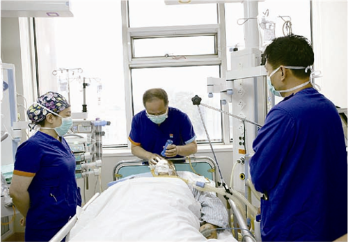 护士长陈韵芳、陈娜抽调了ICU护理部的精兵能将精心护理患者,平均十分钟就需要给刘先生进行一次吸痰。