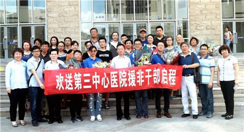 临行前,天津市卫生计生委为医疗队员举行了热烈的欢送仪式。副院长韩涛带领相关职能处室及各临床科室“亲友团”赶到出发现场为队员送行并嘱托队员们,要牢记使命,为国争光。医院是大家的坚强后盾,一定会做好后勤保障工作,让队员们无后顾之忧,全身心投入到援非工作中,发扬三中心人顽强拼搏、勇于担当、无私奉献的精神,圆满完成援非任务,为推动中非医疗卫生合作做出贡献。队员们纷纷表示,一定大力弘扬“敬佑生命、救死扶伤、甘于奉献、大爱无疆”的医者精神,不忘初心,不辱使命,为增进中非人民的传统友谊做出医务工作者最大的贡献。
