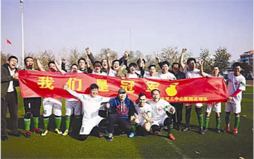 为进一步加深医疗卫生系统各医院之间的沟通和了解,增进兄弟医院之间的感情,提高医疗卫生系统职工身体素质,9月16日,“天津市首届医生足球超级联赛”(简称“医超联赛”)拉开战幕。本届联赛由天津市足球协会官方主办,有来自本市30多家医院组成的22支球队参赛,574名参赛球员全部是工作在医疗一线的医务人员。最终,我院足球队凭借过硬的技术水平,上下团结一致、克服重重困难荣获此次联赛冠军。